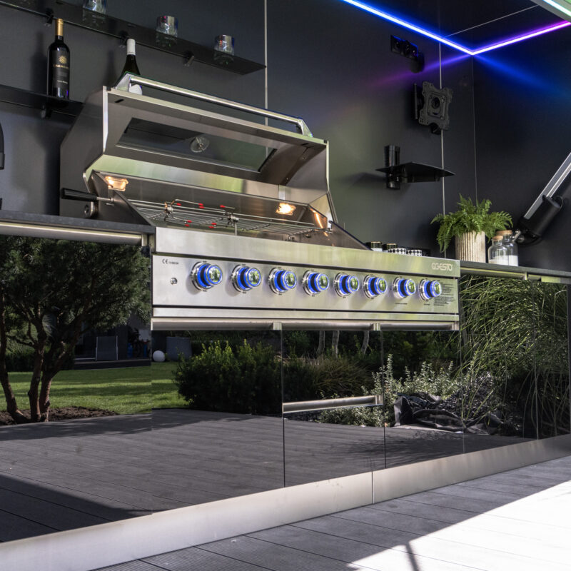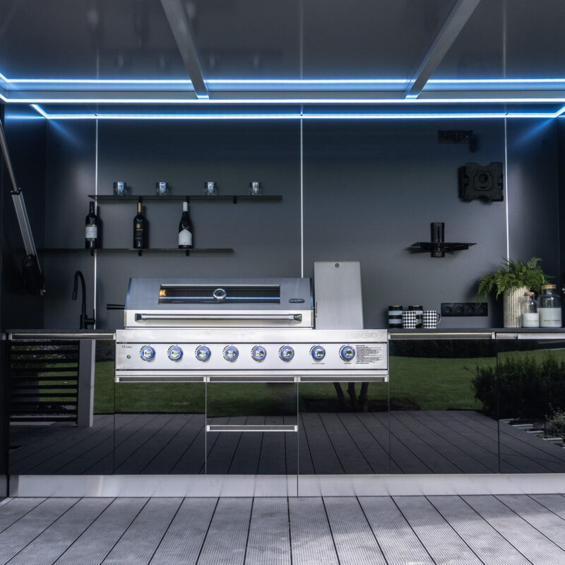 BrasaBox is een buitenkeuken die luxe ademt. Een krachtige Brasa BBQ, strak design en sfeervolle ledverlichting.