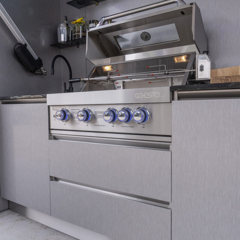 Hoogwaardige materialen – De Brasa buitenkeuken is gebouwd met roestvrij staal en aluminium panelen. Voor een keuken die lang meegaat – en er goed uit blijft zien.