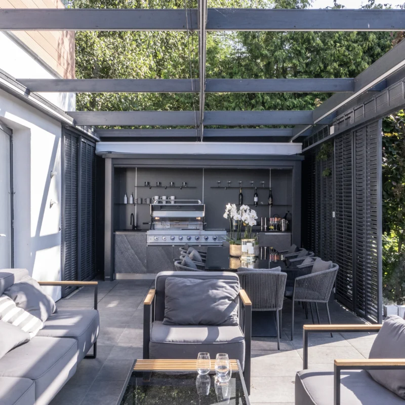 Alles voor koken én entertainment – De Brasa buitenkeuken biedt een complete beleving, dankzij de krachtige gasbarbecue, moderne ledverlichting en tvzone.